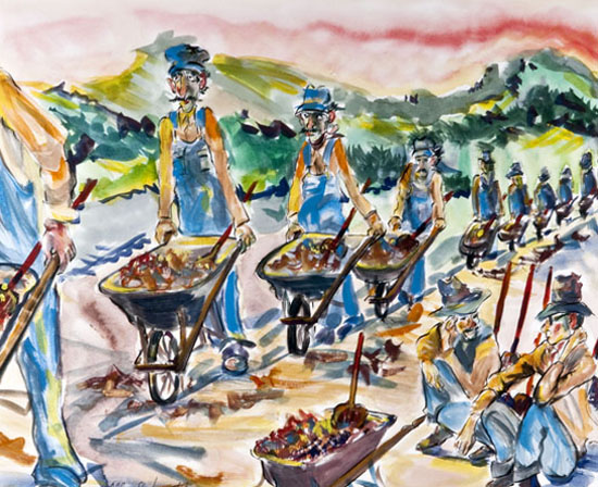 ![]() Shovel Ready, W.P.A. 2009 watercolor and ink on paper 16" X 26" |